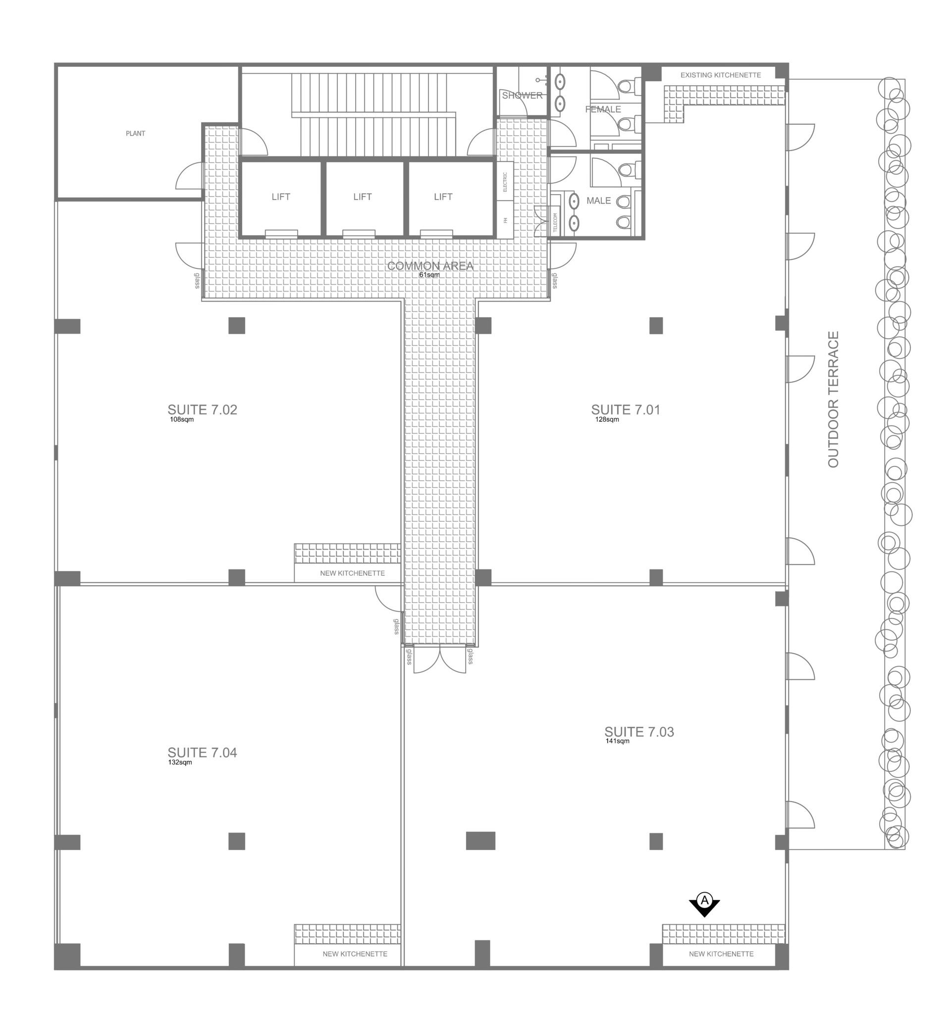 *Common area shower, and M & F toilets on Level 7