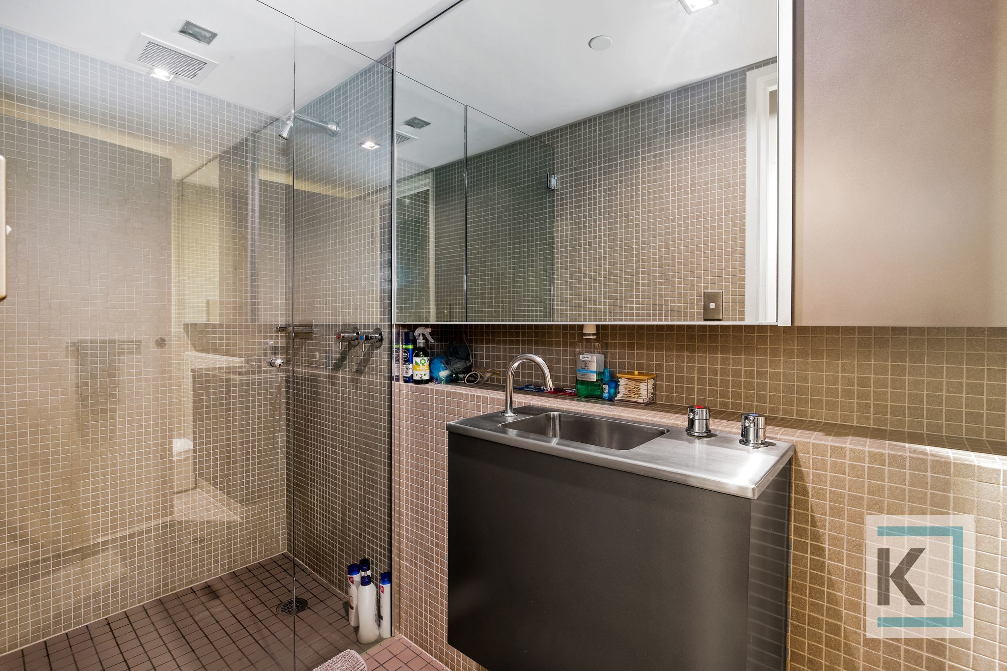 -Internal restroom with shower