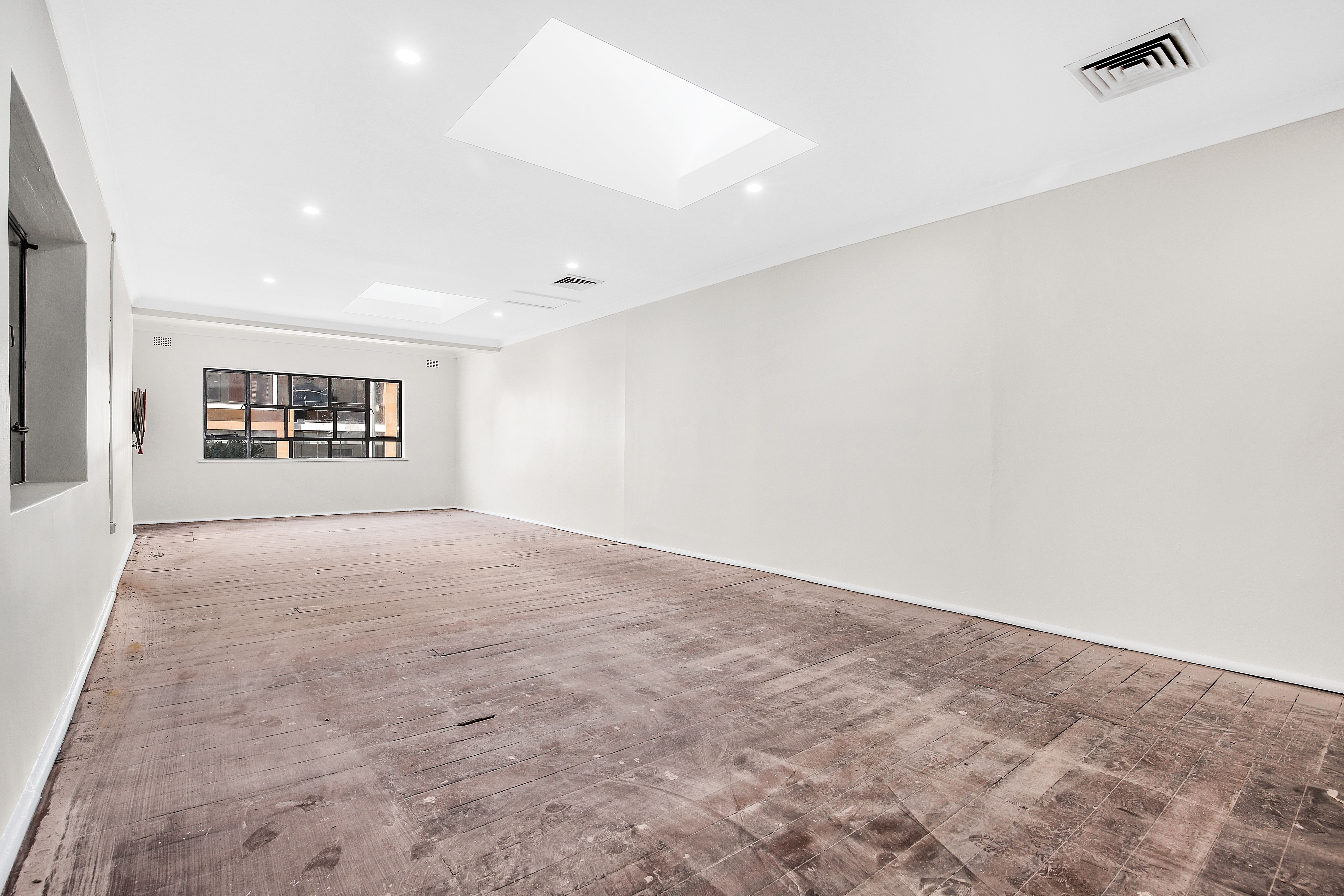 Newly installed sky lights filling the top floor with natural light