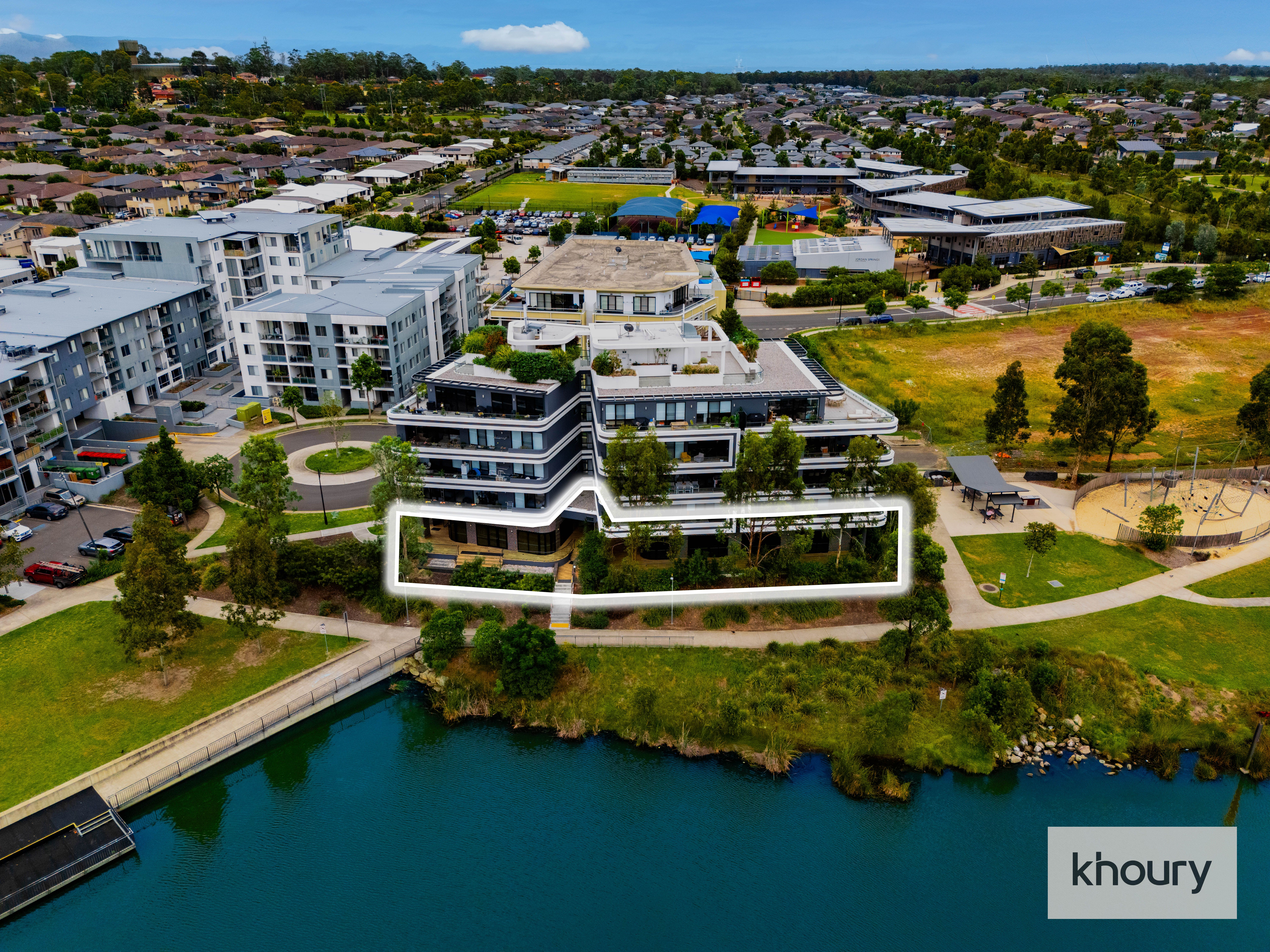 Premium lakeside position just footsteps to the waterside walks, parks and dining options of exclusive Caribbean Promenade, exciting new boutique development in the heart of the Jordan Springs lifestyle precinct. Within easy walk to Shopping Centre, Woolworths, public transport and more. Rising from the water's edge with a boldly contemporary design, Lakeview offers 25 luxurious apartments and two retail areas. 2 car spaces allocated for the shops plus 6 visitor car spaces secured in basement.